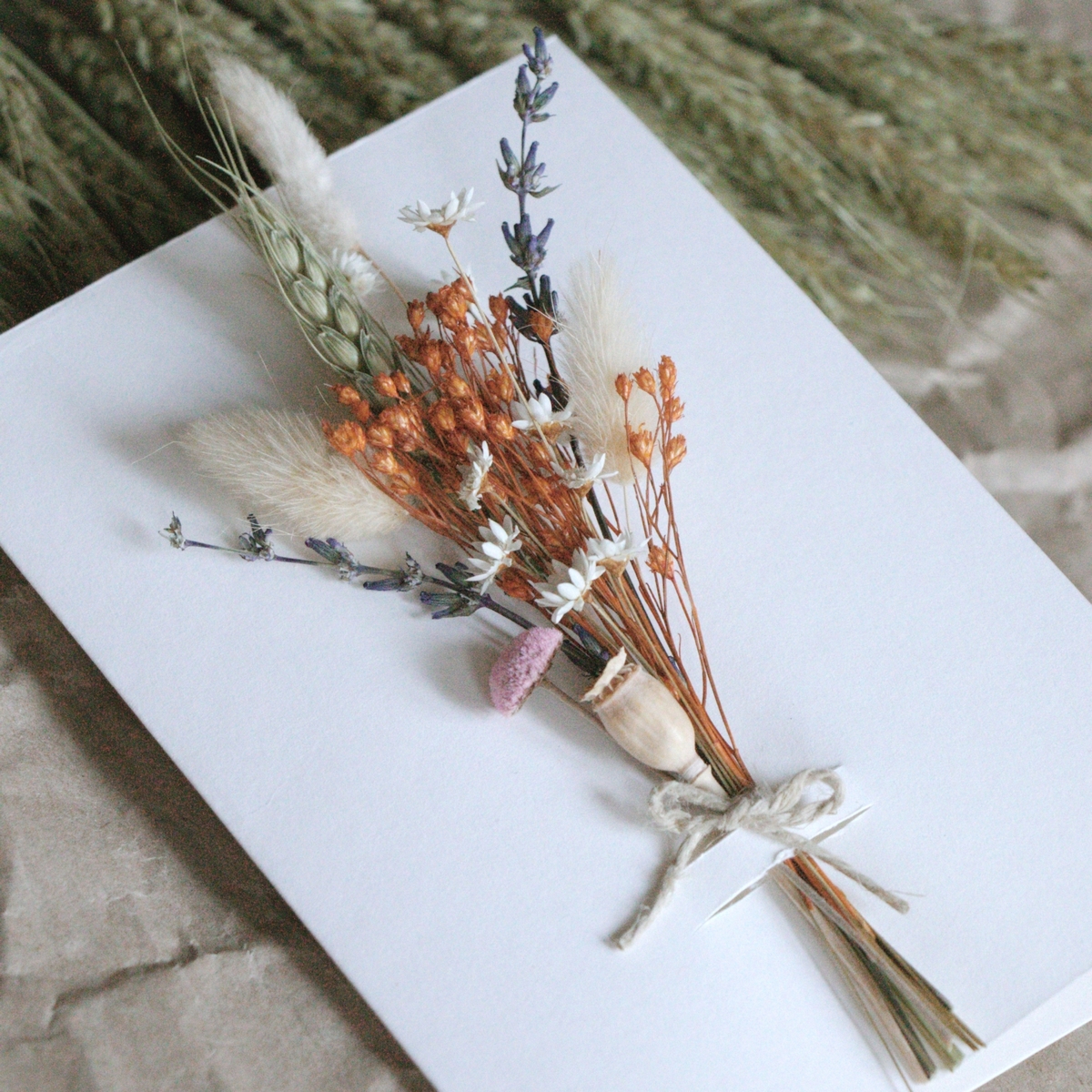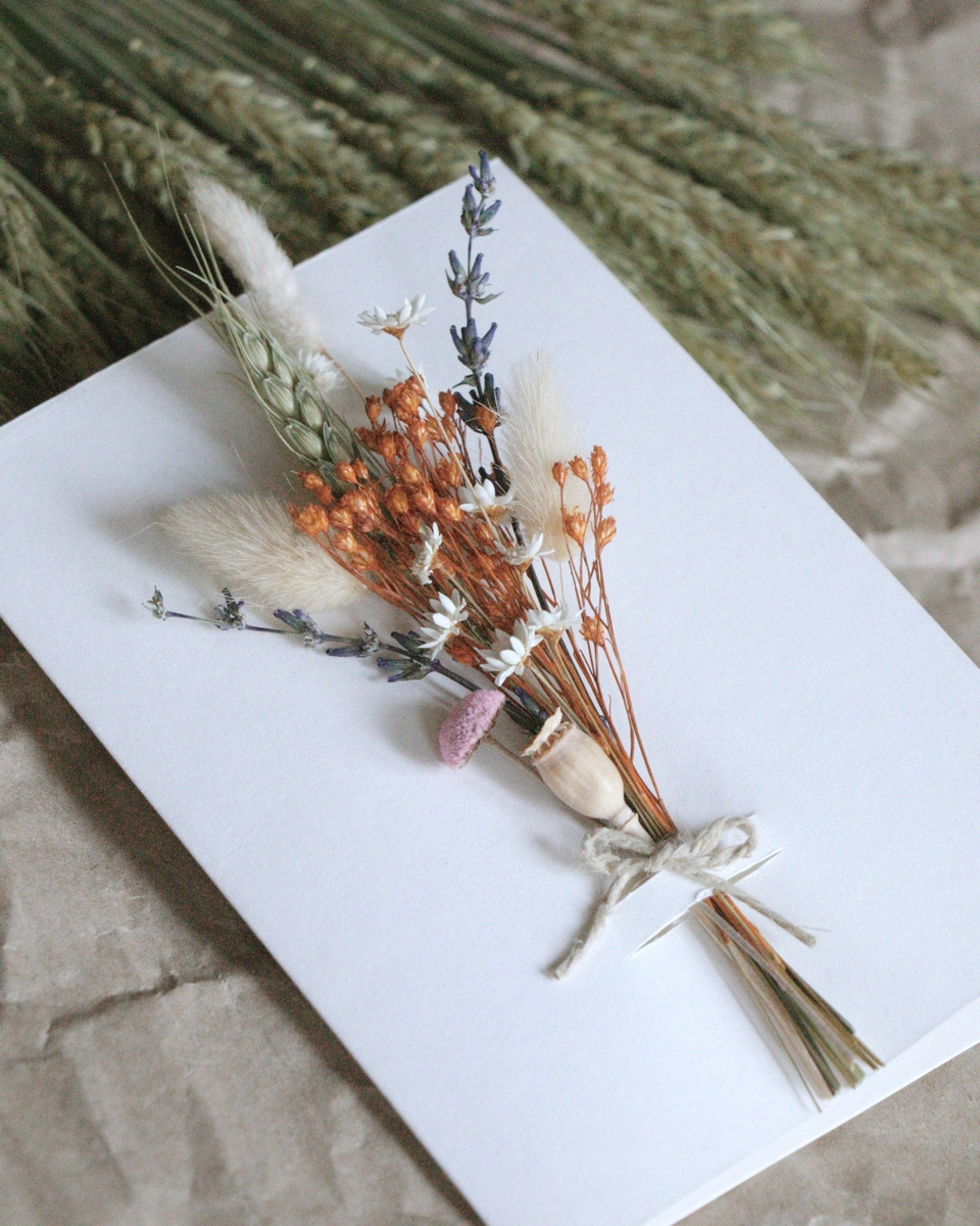 Szárazvirággal díszített képeslap készítés