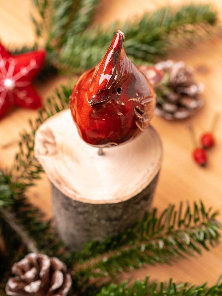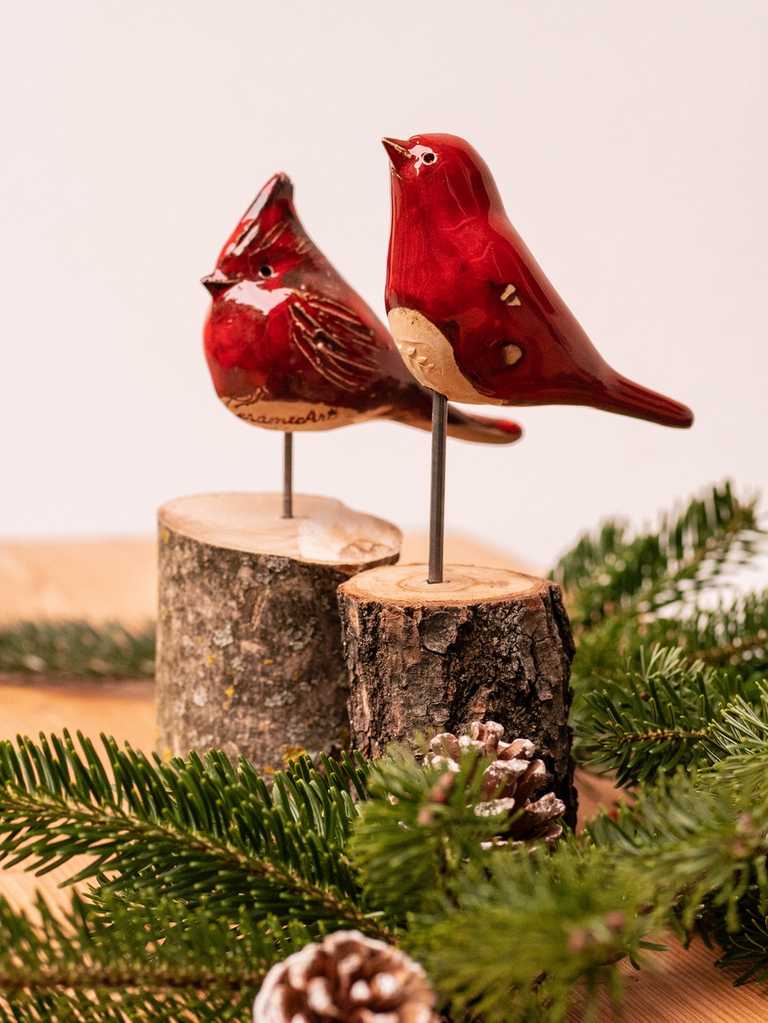 Bár a fotón épp az ünnepi piros példányok szerepelnek, a teljes madársereg sokkal színesebb: változatos fajokat, formákat és karaktereket örökít meg a tervező, így biztosan találsz köztük egyet, amely hozzád vagy egy szerettedhez szól.
