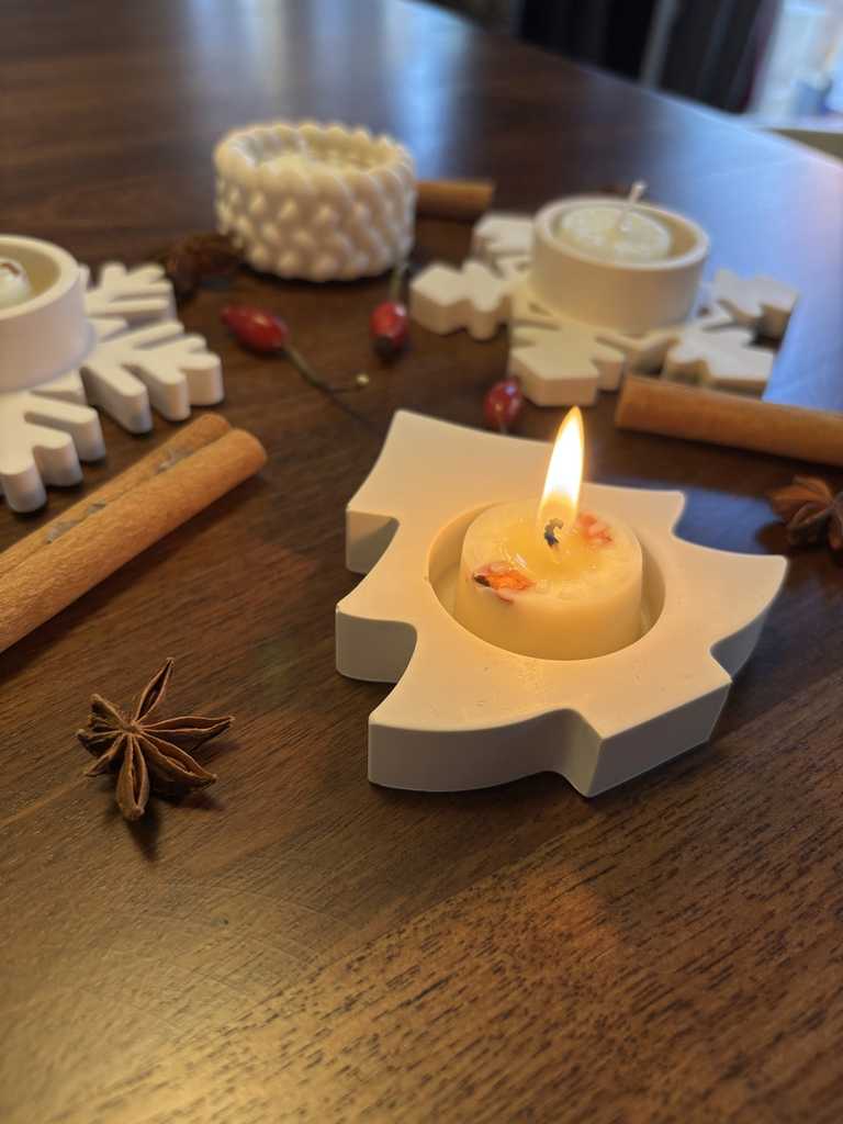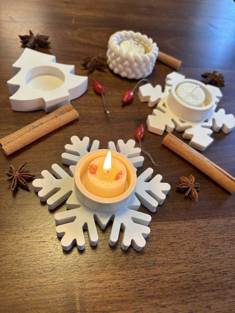 A hópehely- és fenyőfa alakú jasmonite mécsestartók mellé kétféle, ünnepi illatú gyertya érkezik elegáns csomagolásban – így már ajándéknak is tökéletes.