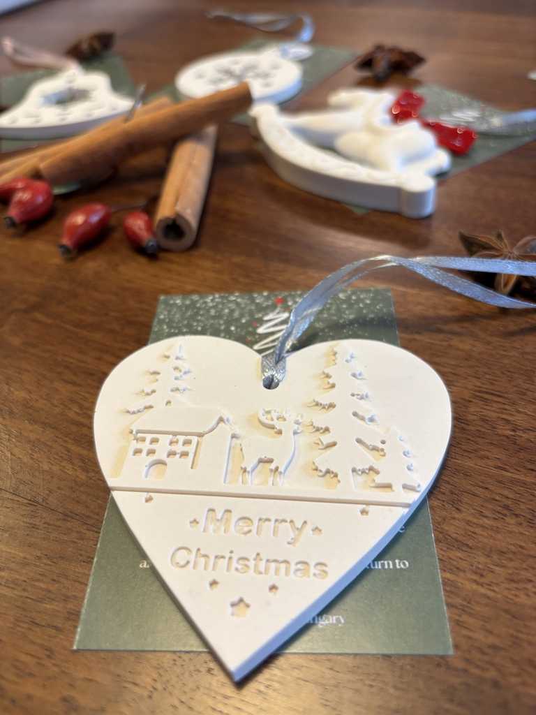 Ne hagyd ki a karácsonyfadíszeket sem: illatosítható, hófehér figurák, amelyek nemcsak díszítenek, hanem varázslatos hangulatot is hoznak a lakásba.